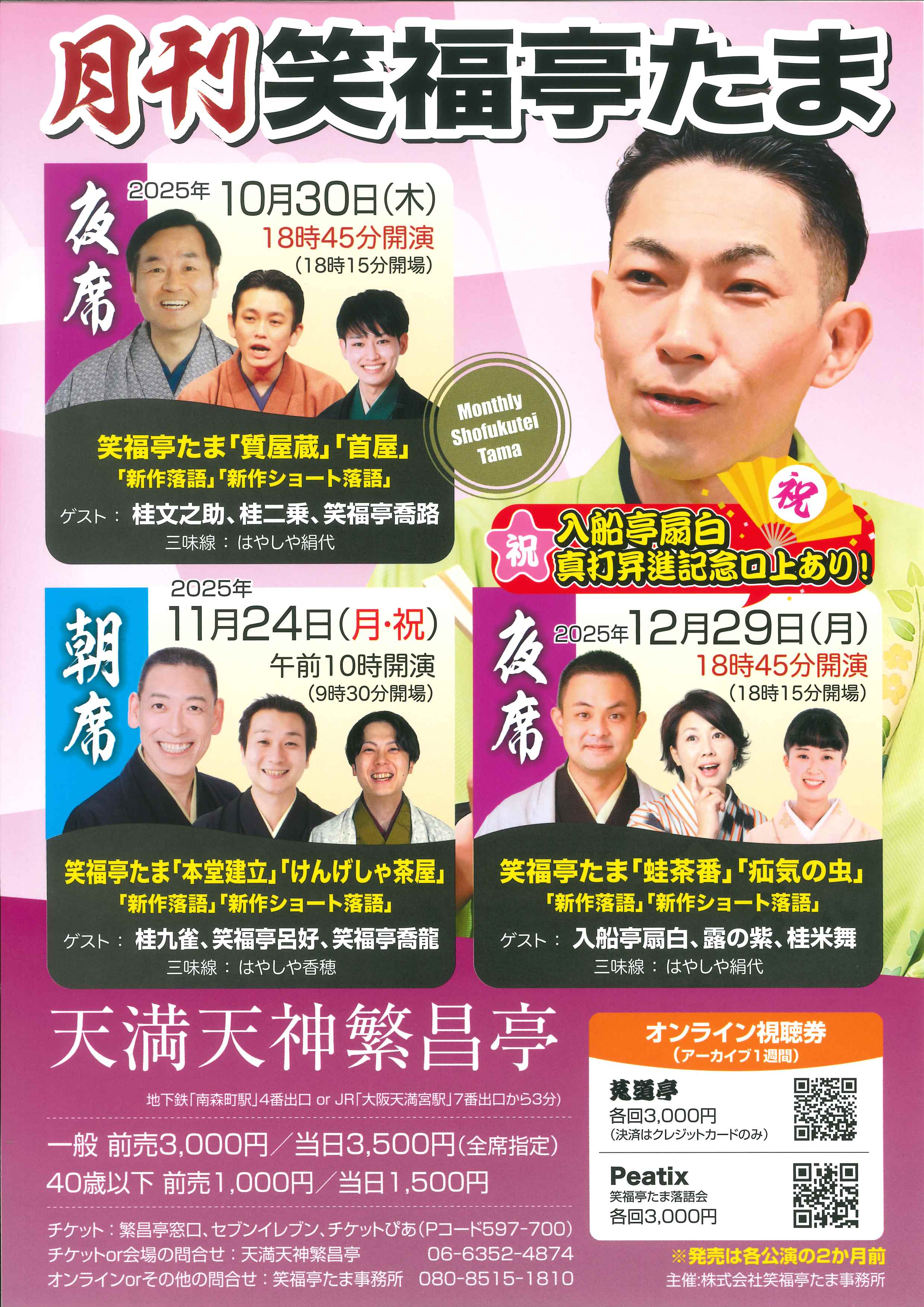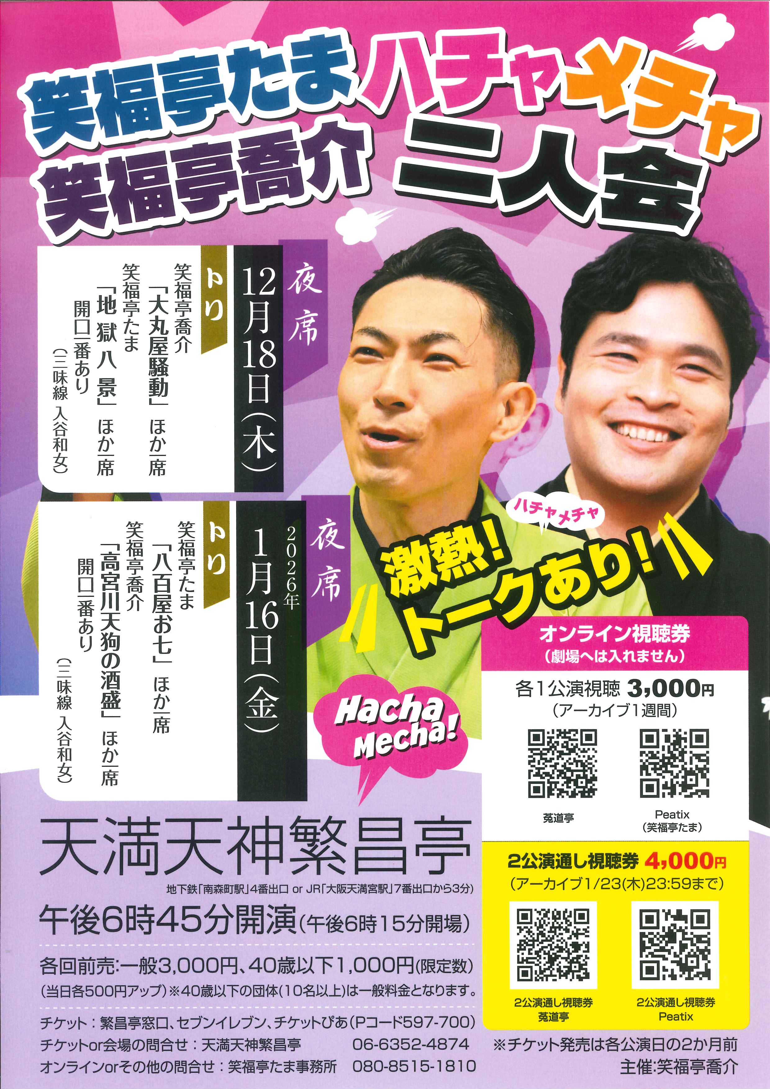 お問合せ:米朝事務所 06-6365-8281(平日10時~18時)