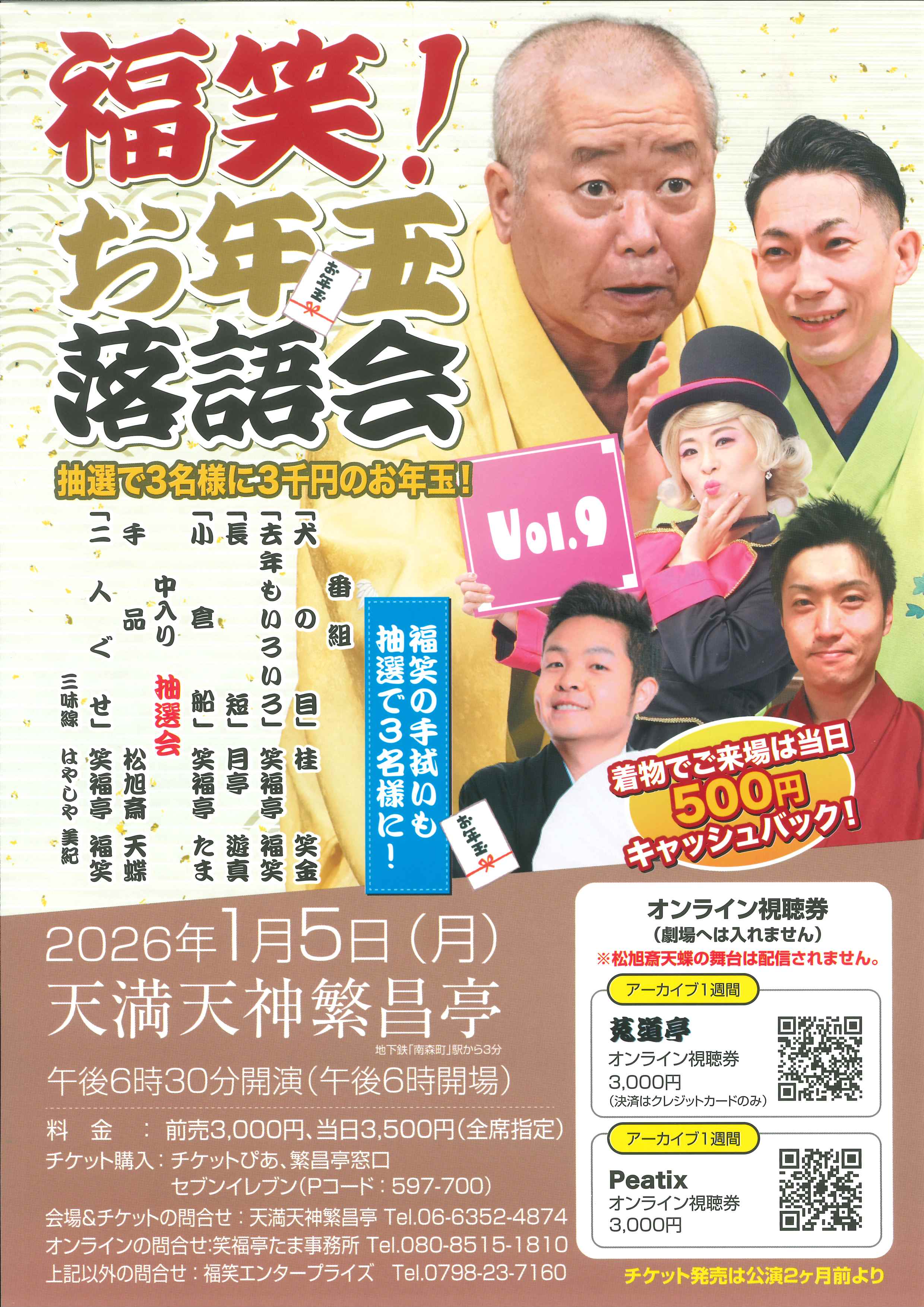福笑!お年玉落語会vol.9~抽選で3名様に3千円のお年玉!~