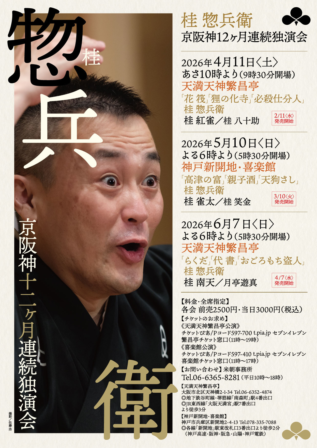 お問合せ:米朝事務所 06-6365-8281(平日10時~18時)
