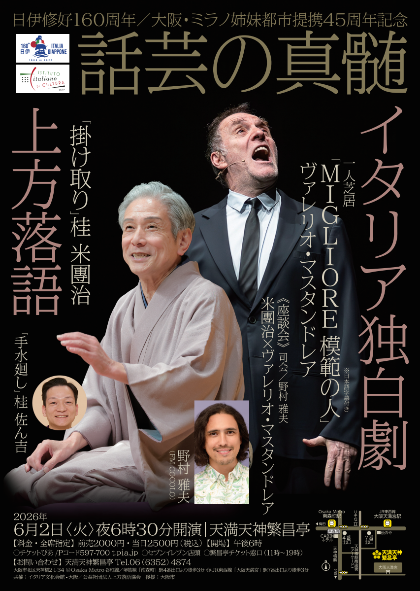 日伊修好160周年/大阪・ミラノ姉妹都市提携45周年記念「話芸の真髄~上方落語×イタリア独白劇~」