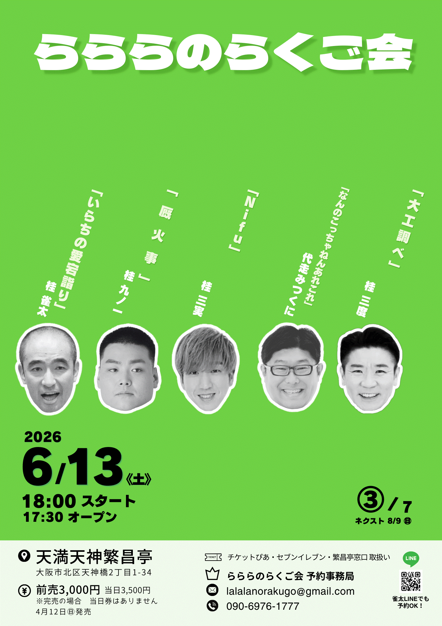 お問合せ:らららのらくご会予約事務局 090-6976-1777 email:lalalanorakugo@gmail.com