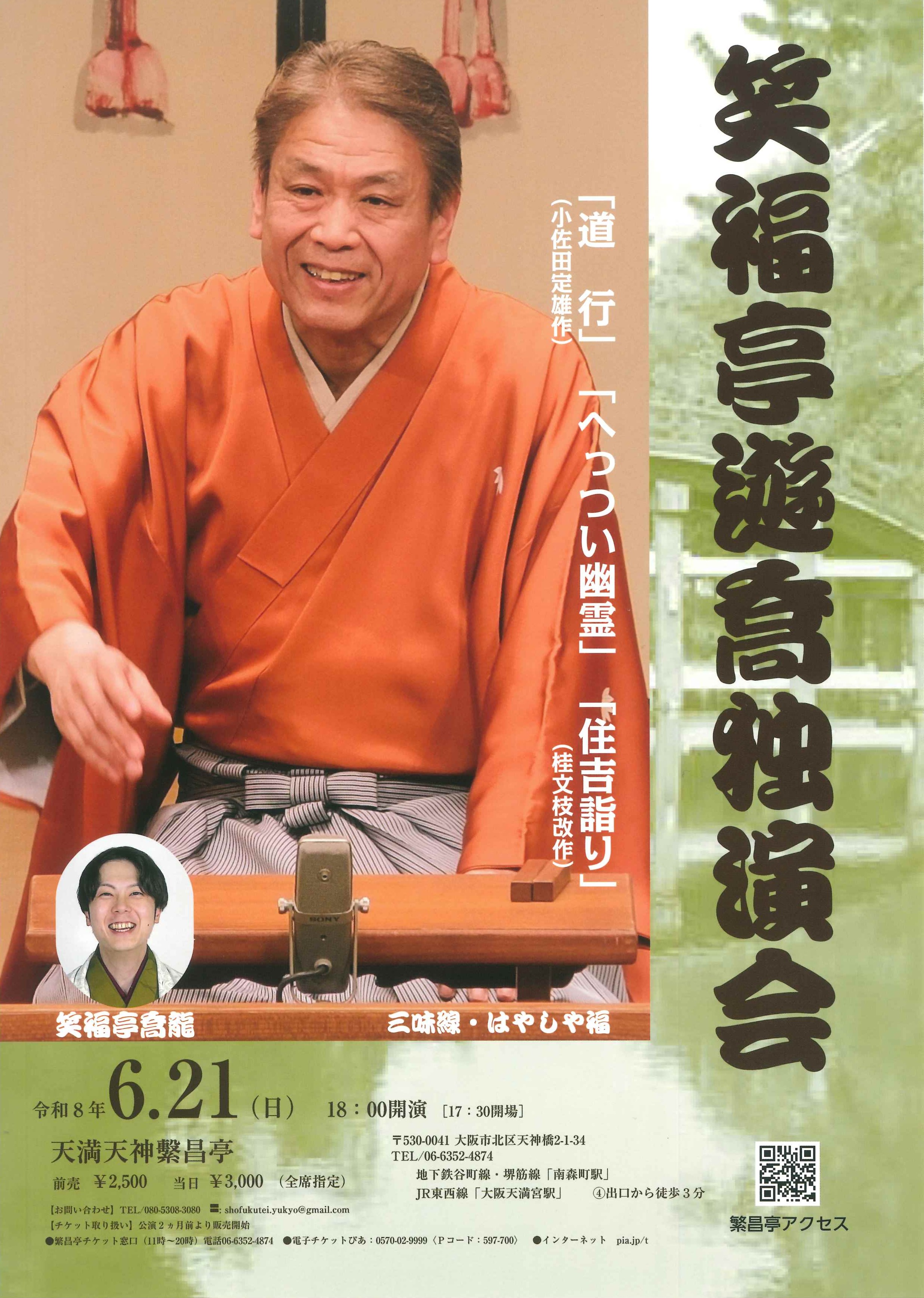 お問合せ:笑福亭遊喬独演会事務局 080-5308-3080