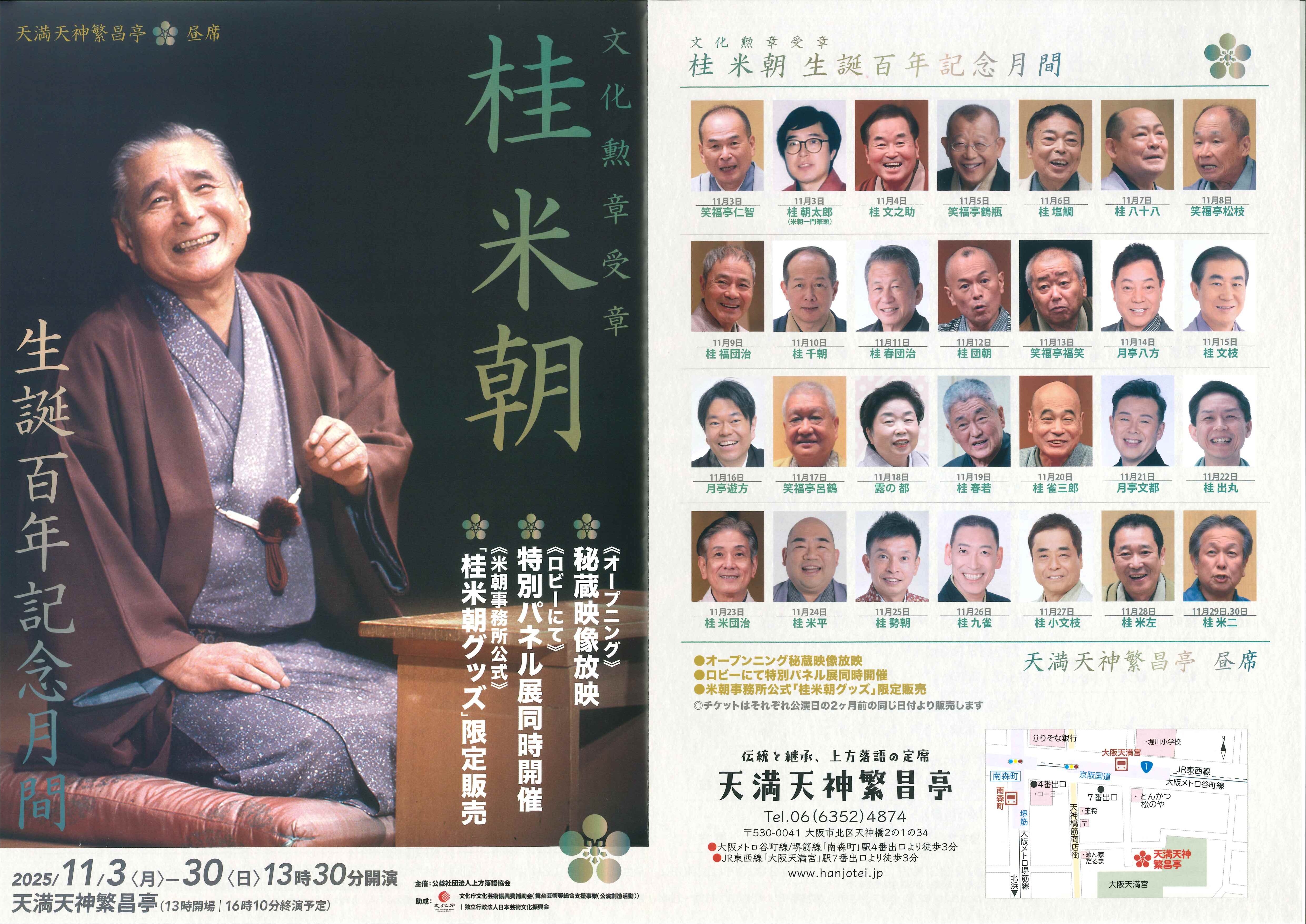 文化勲章受章 桂米朝 生誕百年記念月間