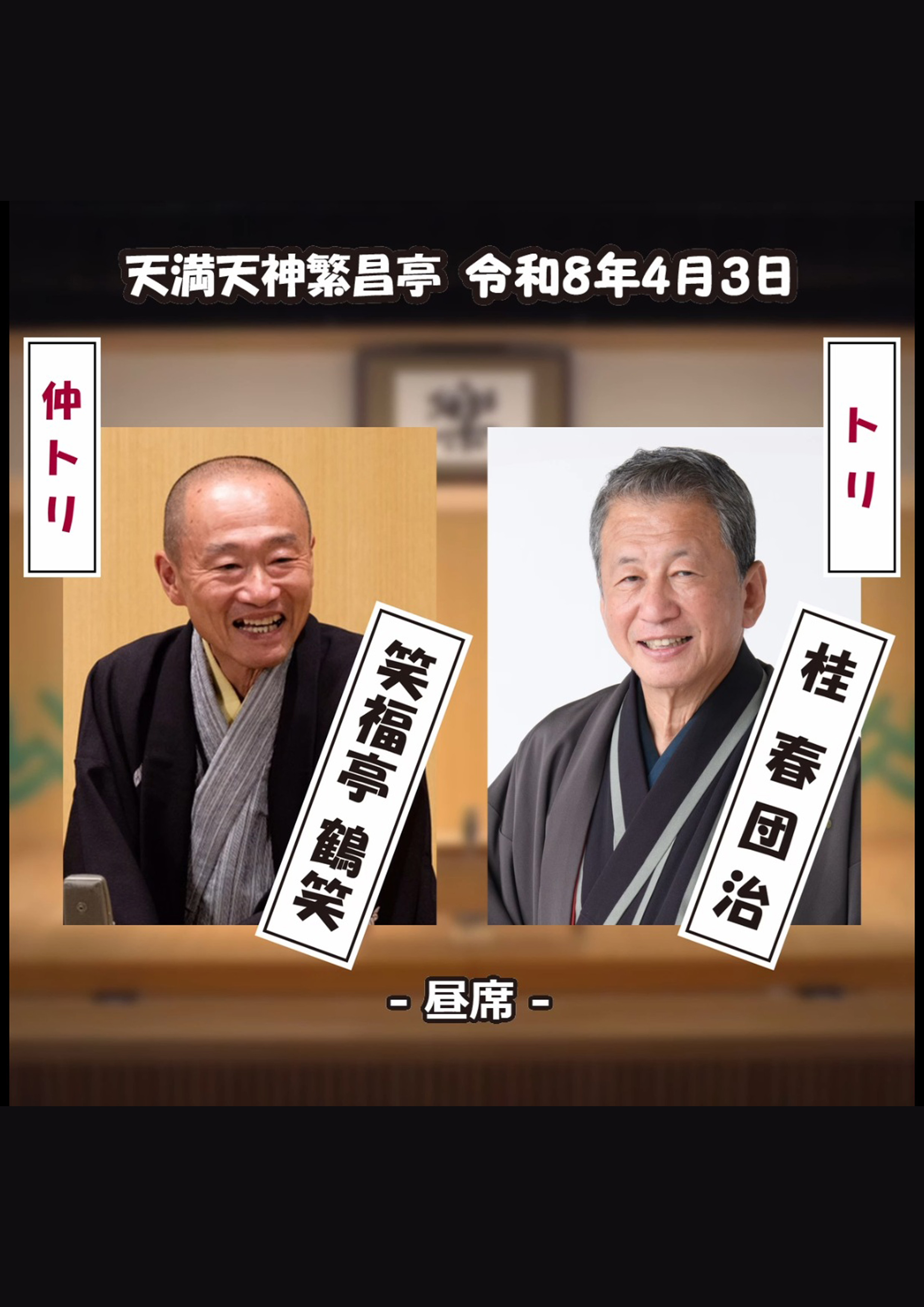 月亭柳正/桂鹿えもん/桂歌之助/くるくるコミック(コント)/桂七福/笑福亭鶴笑※~仲入~桂白鹿/林家染二※/一魁斎京次郎(奇術)/桂春団治※(※…配信はございません。)