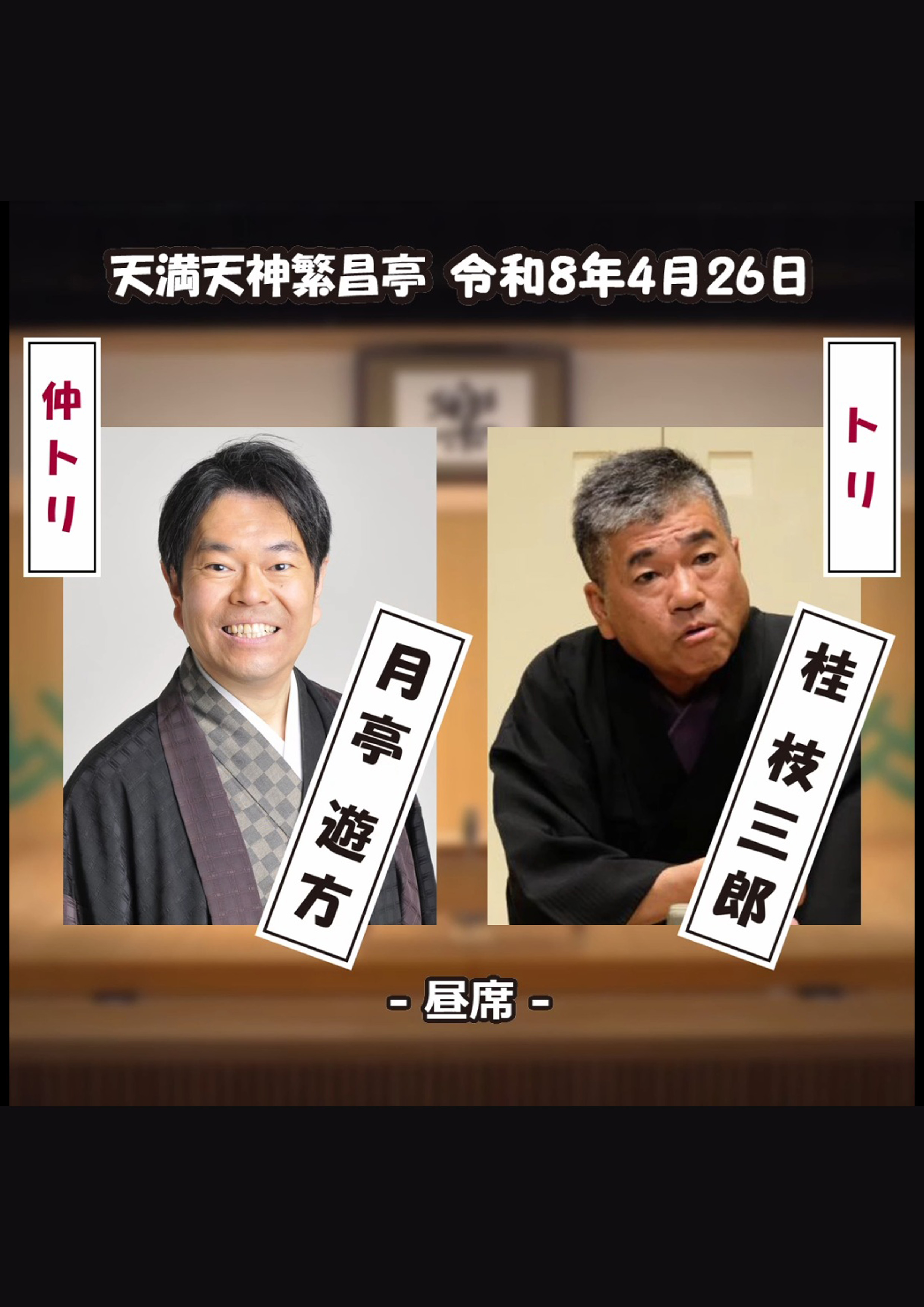 桂枝之進/桂白鹿/桂珍念※/松原タニシ(漫談)/林家竹丸/月亭遊方~仲入~林家愛染/笑福亭生喬/桂三象(踊り)/桂枝三郎(※…配信はございません。)
