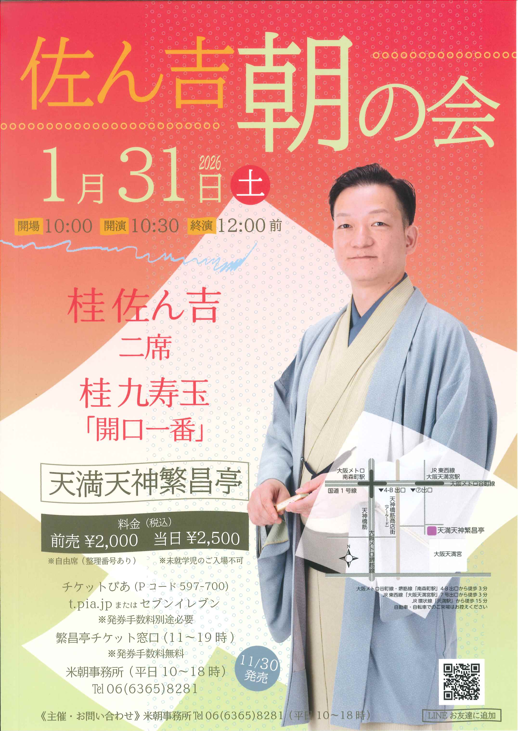 お問合せ:米朝事務所 06-6365-8281(平日10時~18時)