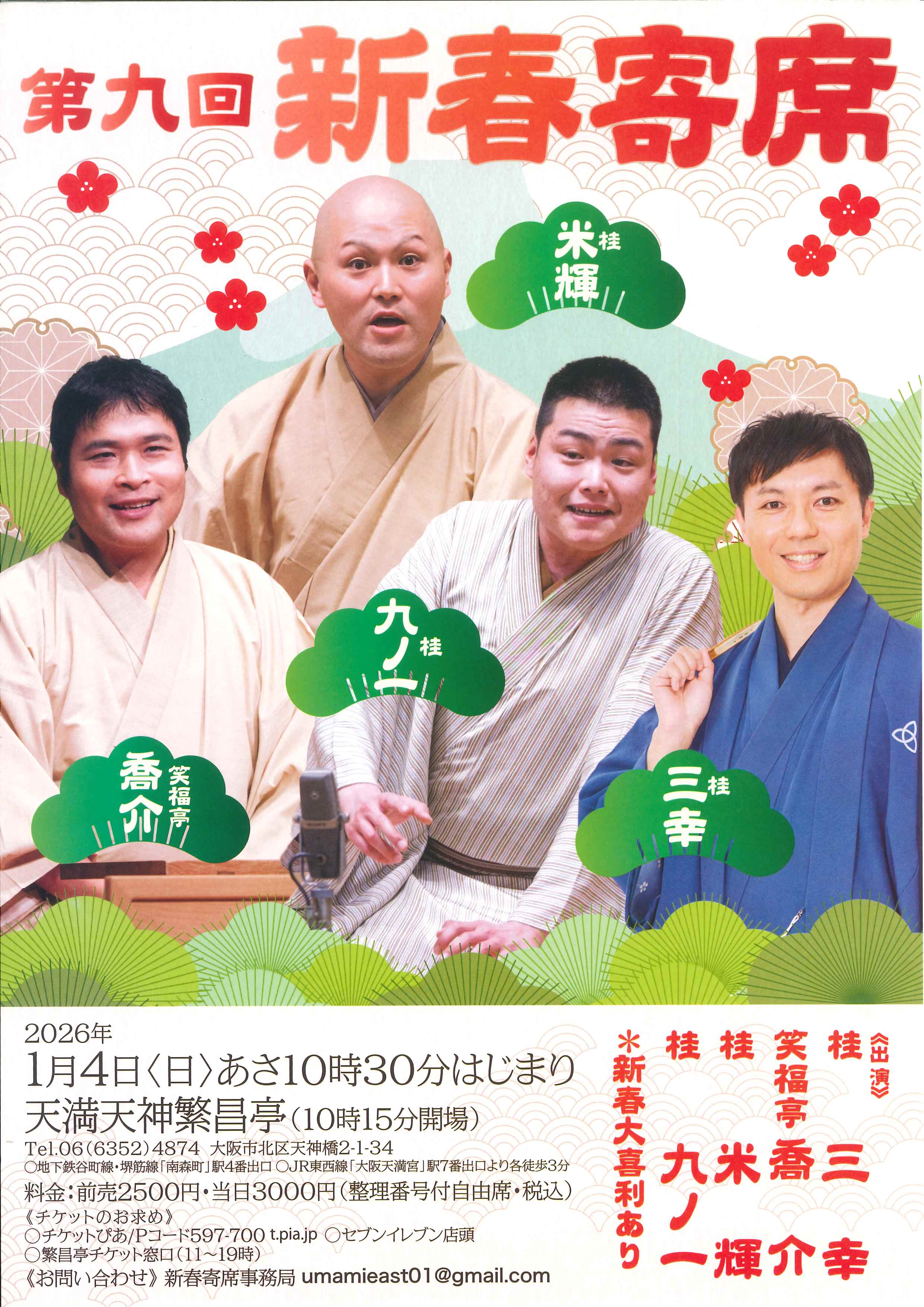 桂りょうば/露の眞/桂米紫/いわみせいじ(似顔絵)/笑福亭松喬~仲入~【新春大喜利】右喬・かい枝・三幸・団姫改メ五九洛・松喬(司会)/桂米左/笑福亭福笑