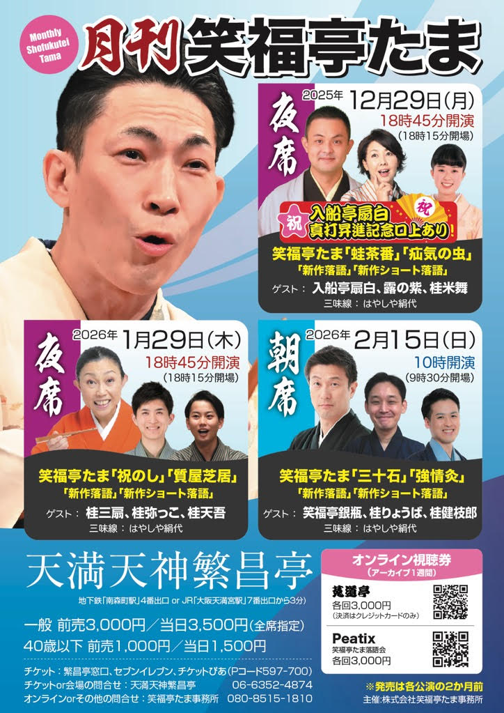 お問合せ:笑福亭たま事務所 080-8515-1810