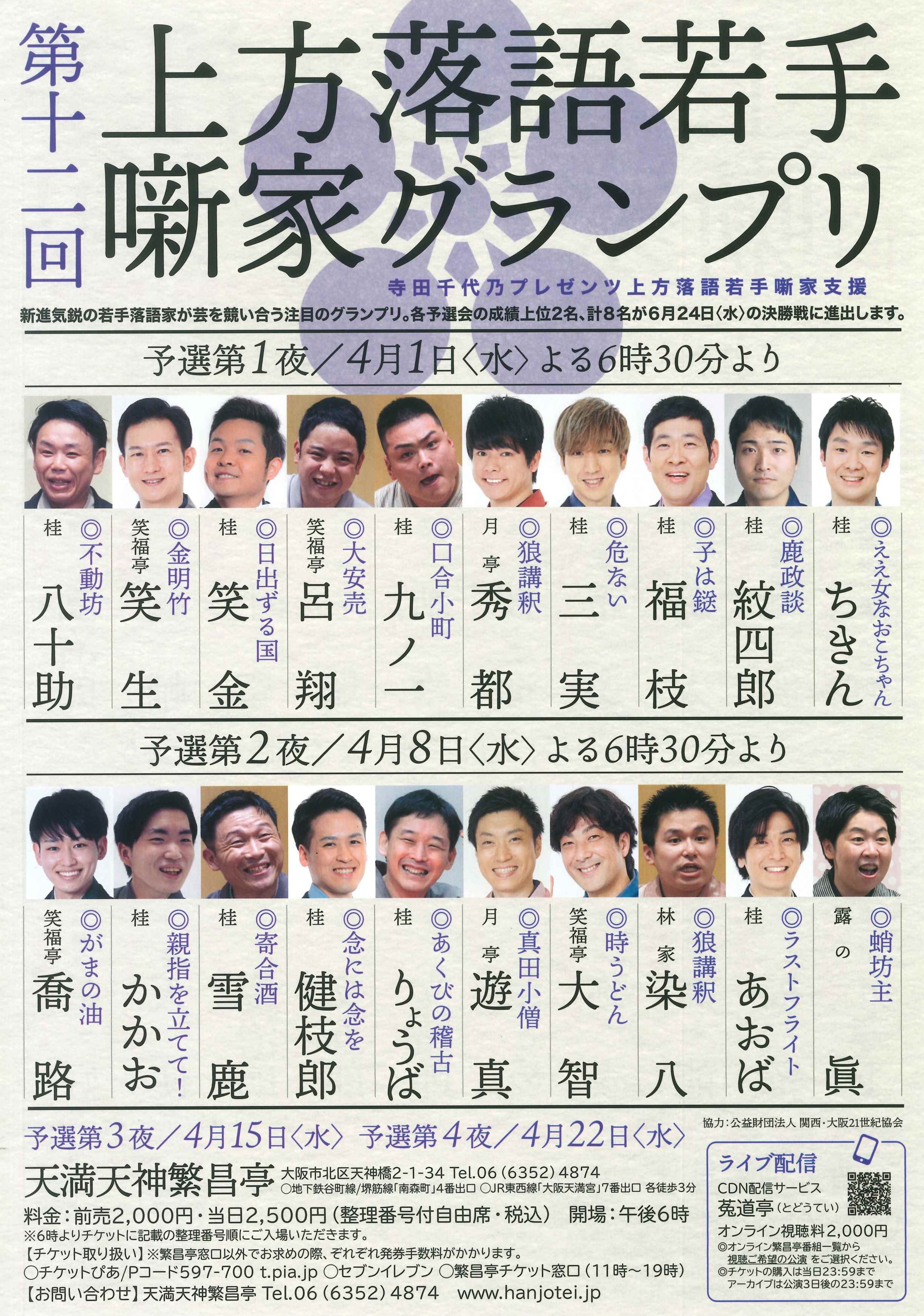 桂雪鹿/桂弥っこ/笑福亭仁昇※/暁あんこ(曲芸)/桂阿か枝/桂千朝※~仲入~林家笑丸/桂米左/囃子座(音曲漫才)/笑福亭福笑(※…配信はございません。)