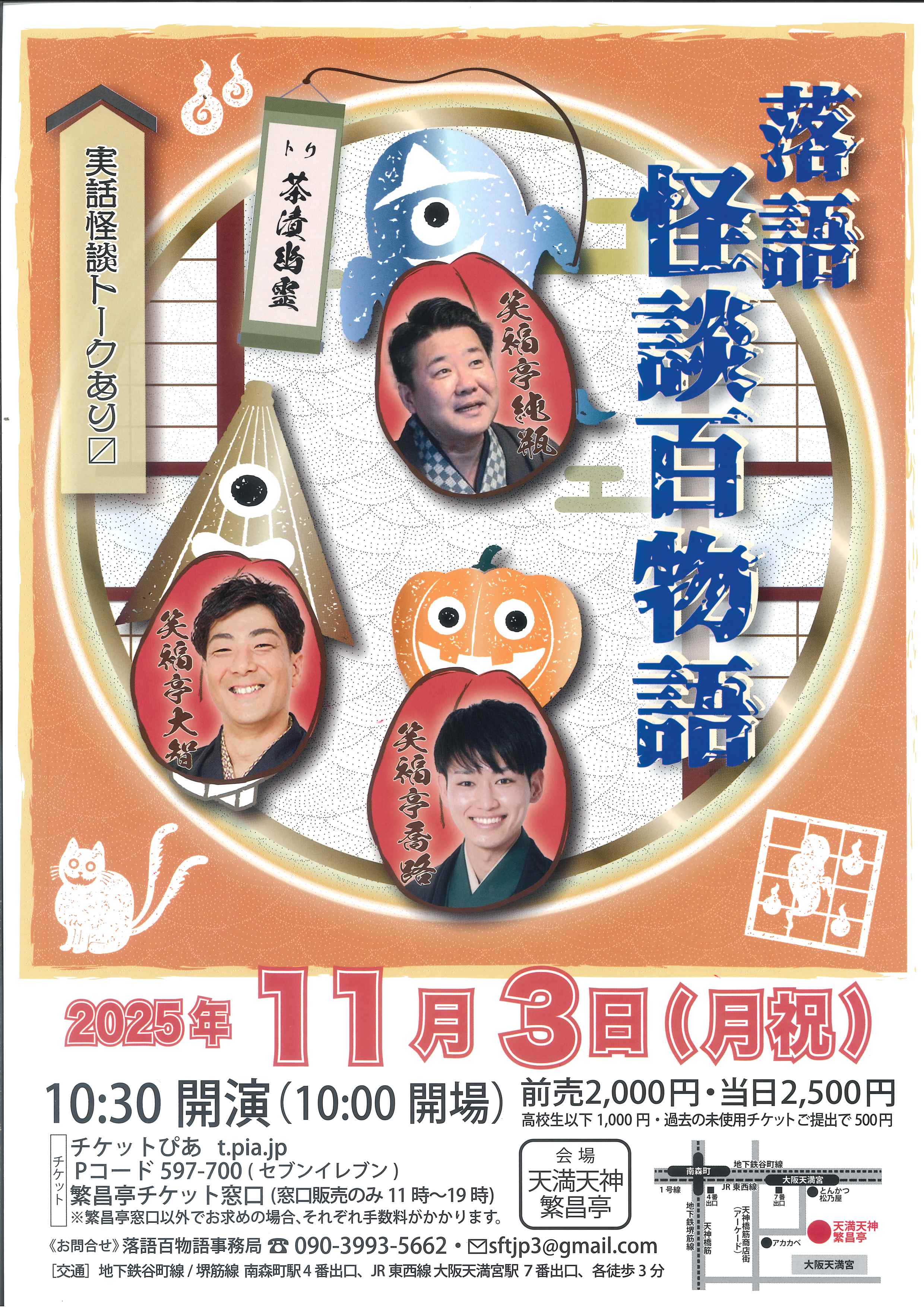 お問合せ:落語・怪談百物語事務局 090-3993-5662 sftjp3@gmail.com
