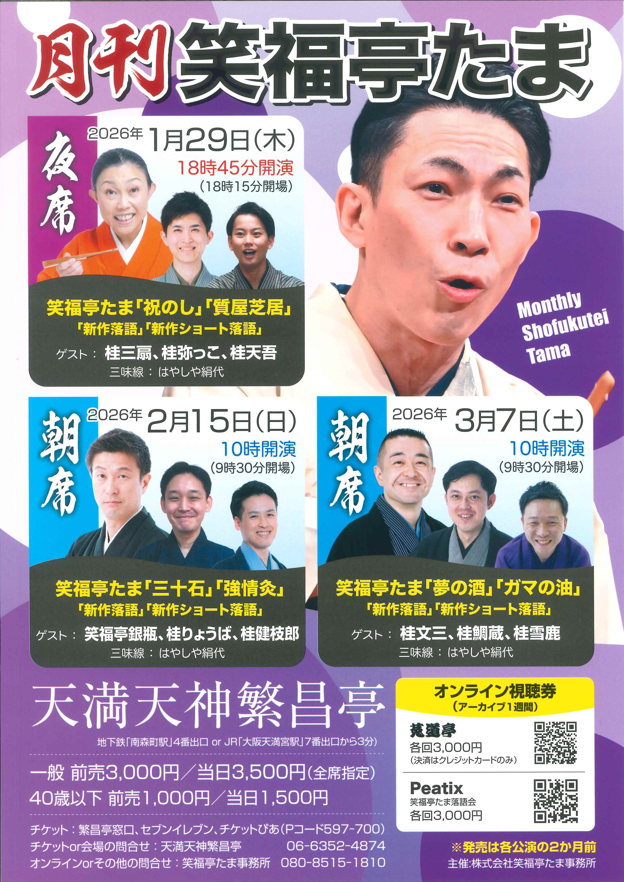 お問合せ:笑福亭たま事務所 080-8515-1810