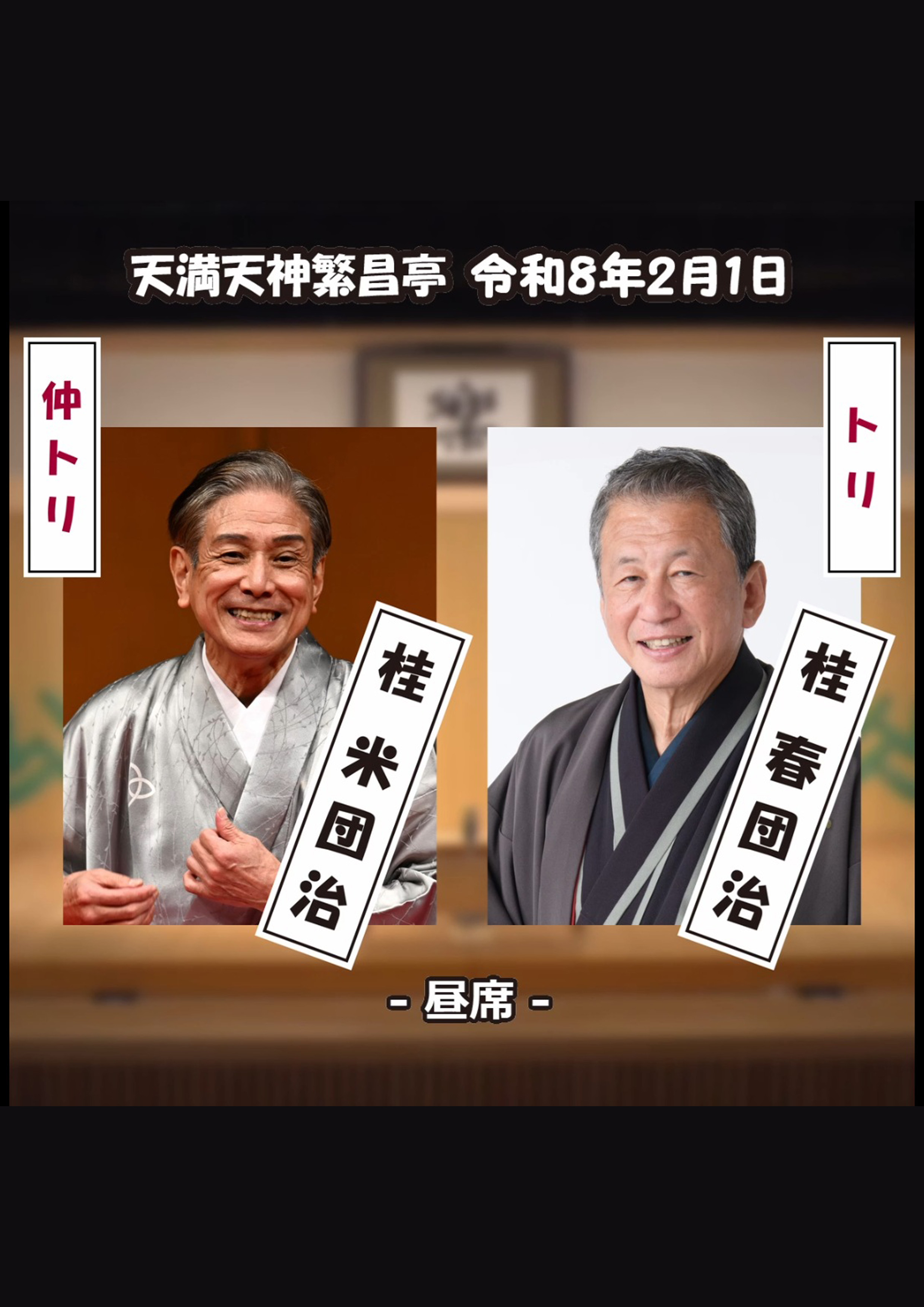 お問合せ:桂米二予約センター:080-5338-7331 梅団治事務所:06-6606-5632
